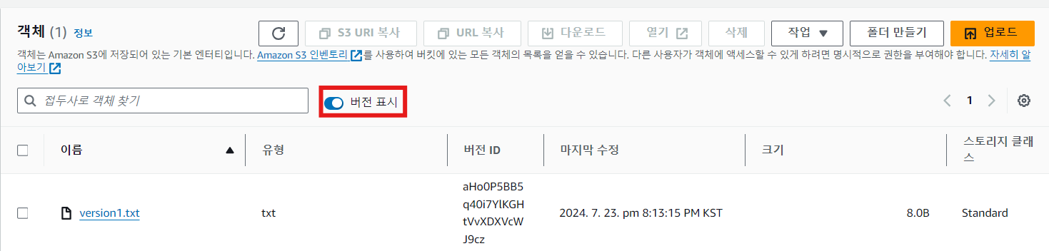 ※ 현재 버전이 delete marker라면 동작하지 않음