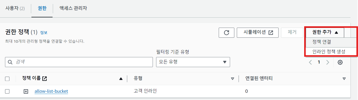 - 정책 설정(불특정 다수가 접근 가능한 정책)