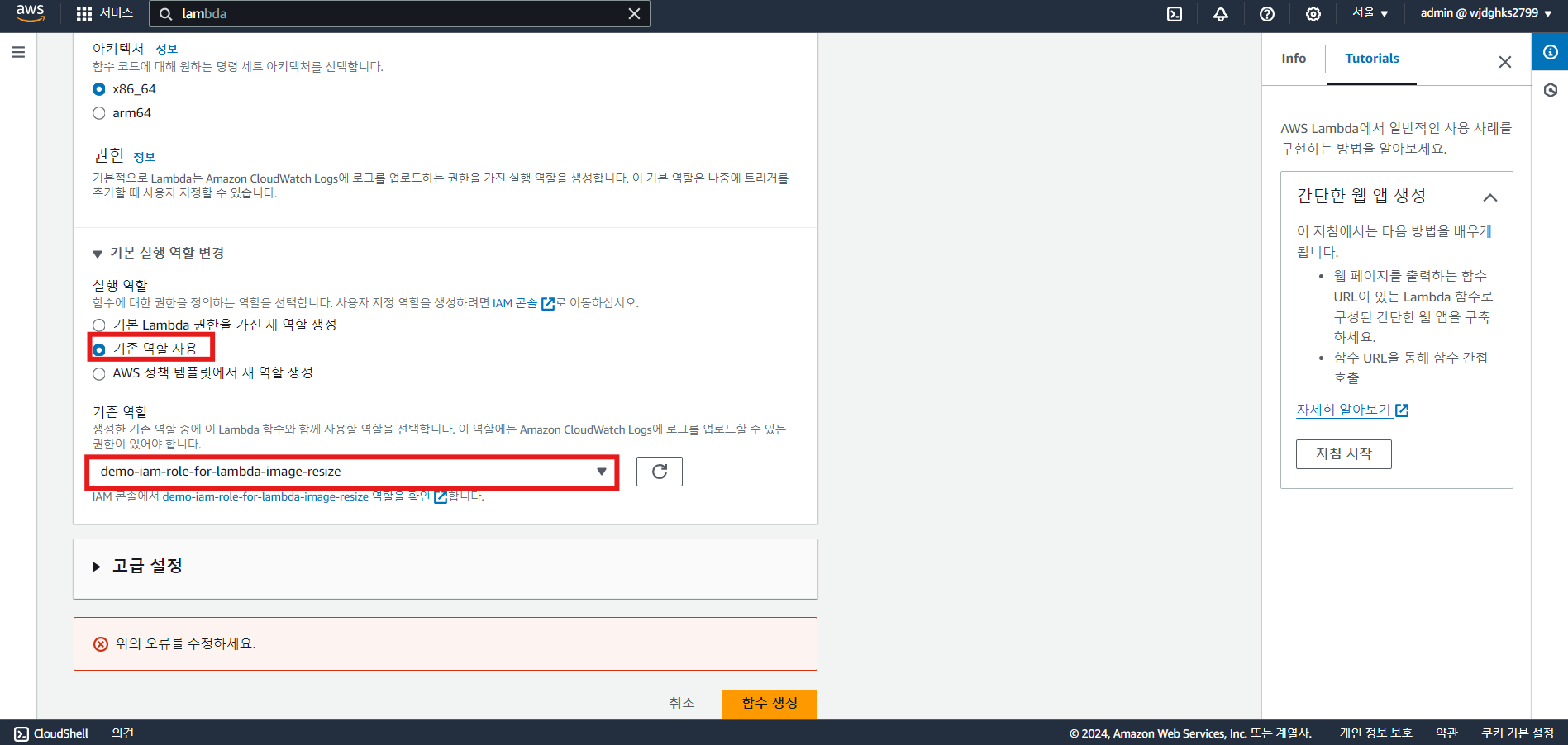 ※ 람다 함수 생성 시 생성한 IAM 역할 등록