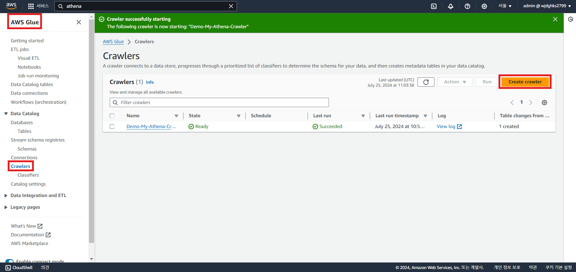 - AWS Glue Crawler를 사용해 S3 버킷에 저장된 로그의 스키마 생성