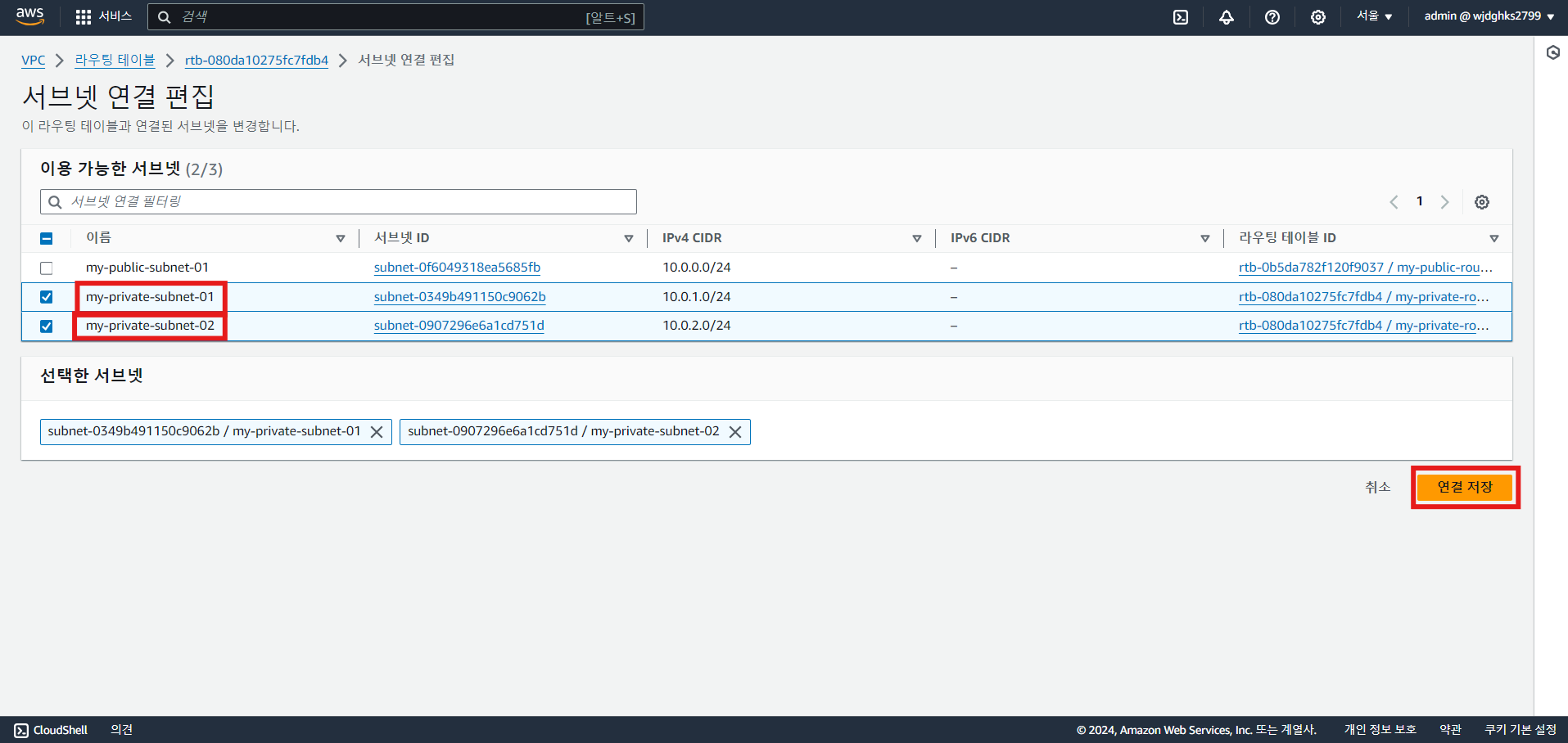 - 프라이빗 서브넷: 외부에서 인터넷을 통해 연결할 수 없는 서브넷