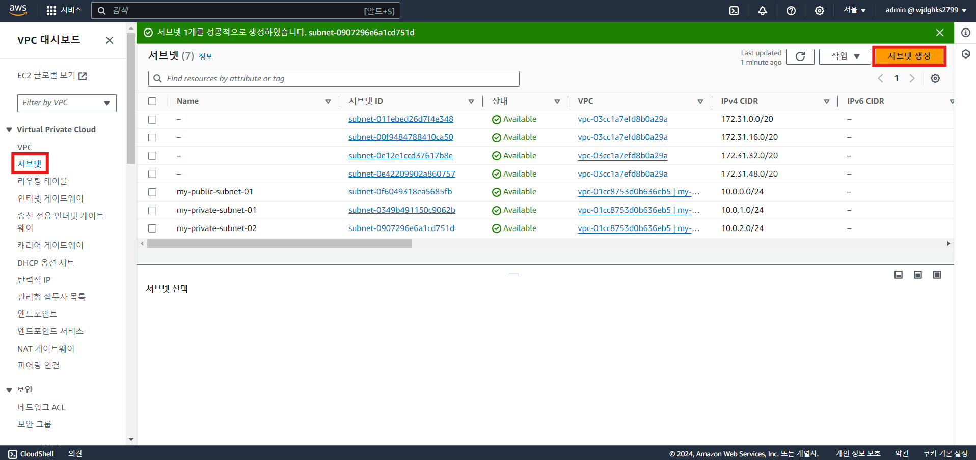 - 기본적으로 각 AZ마다 서브넷을 생성