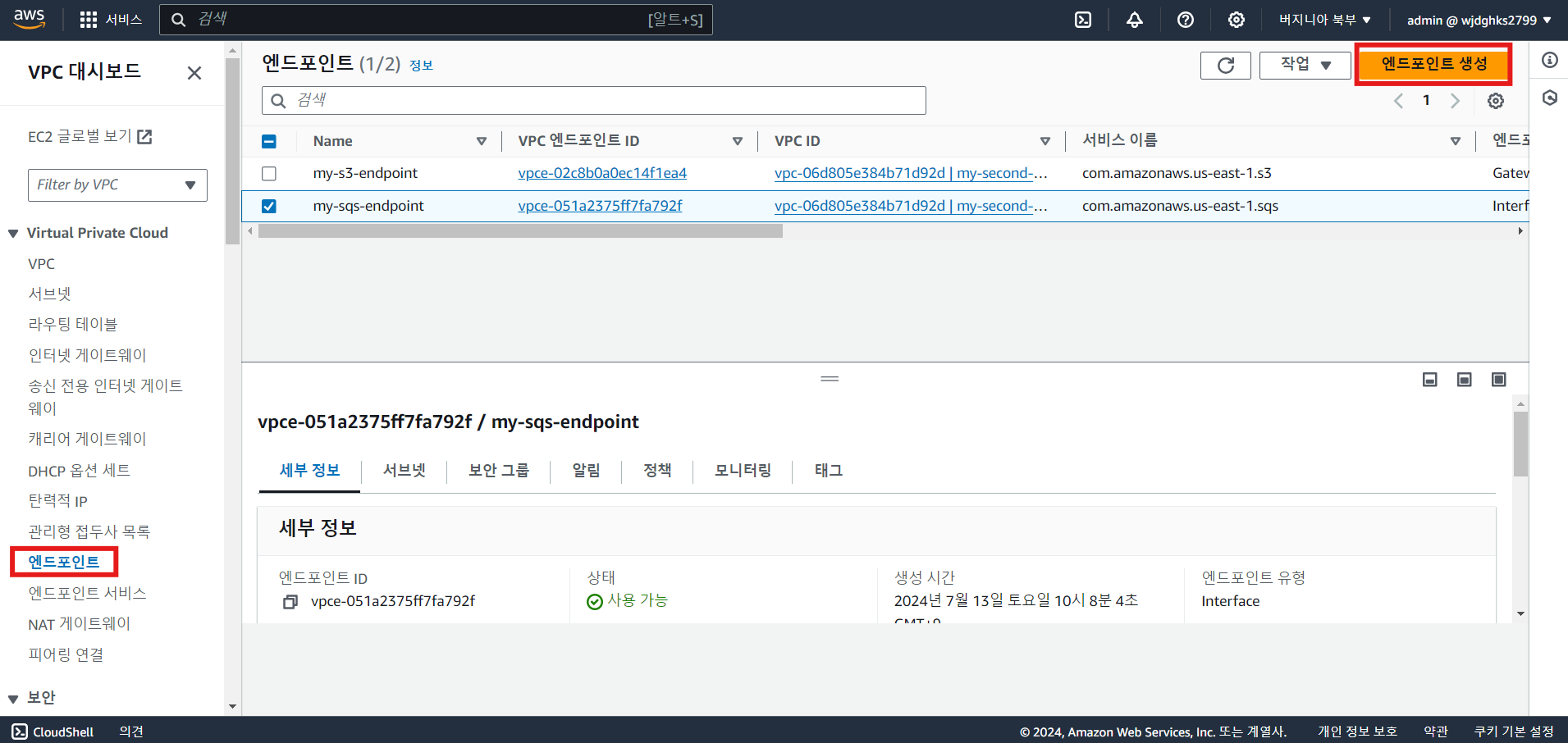 실습 - VPC 엔드포인트 생성: SQS Interface Endpoint 생성