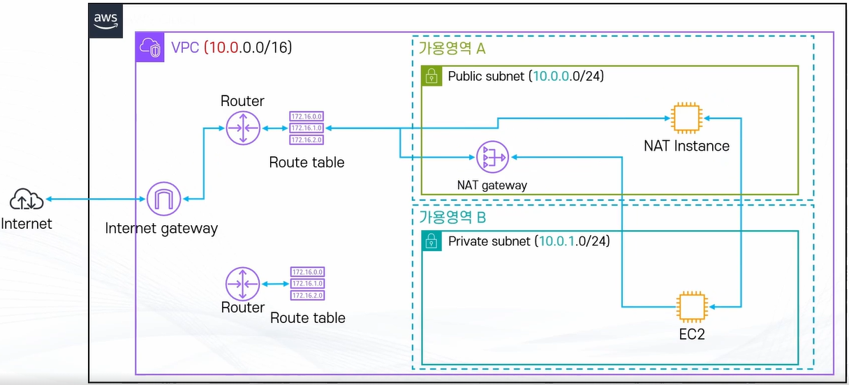 - 예: 10.0.1.0/24, 172.16.0.0/12