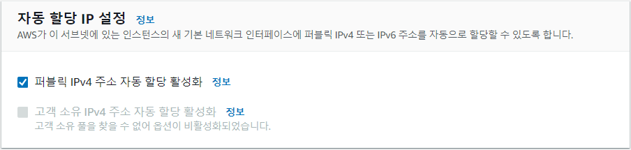 - 안에 위치한 인스턴스에 퍼블릭 IP 부여 가능