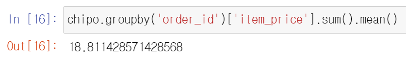 - mean() 함수를 사용하여 평균을 구해 한 사람이 얼마의 가격을 지불하여 주문을 할지 구함