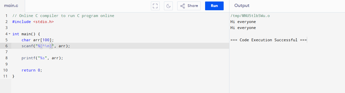 1) '공백없이' 받는 것인데 scanf는 항상 끝에 '\0'이라는 공백이 따라옴.
