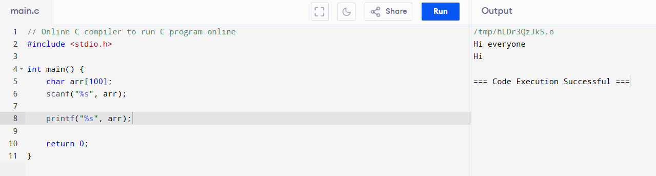 그래서 Hi다음에 있는 공백까지 출력된 것이다.