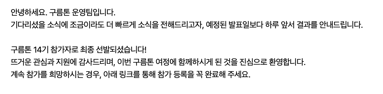 이번엔 좀 편한 마음으로? 기대 안하고 지원서 적어서 냈었는데, 어떻게 최종 선발되었다