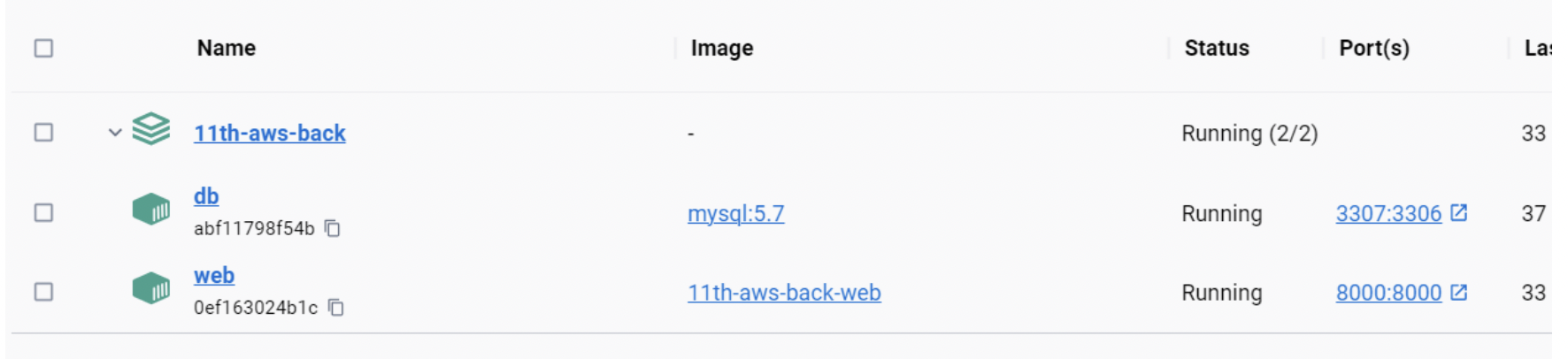 sudo docker ps -a로 실행중인 컨테이너를 보니 web이 없고 nginx만 돌아가고 있었다.