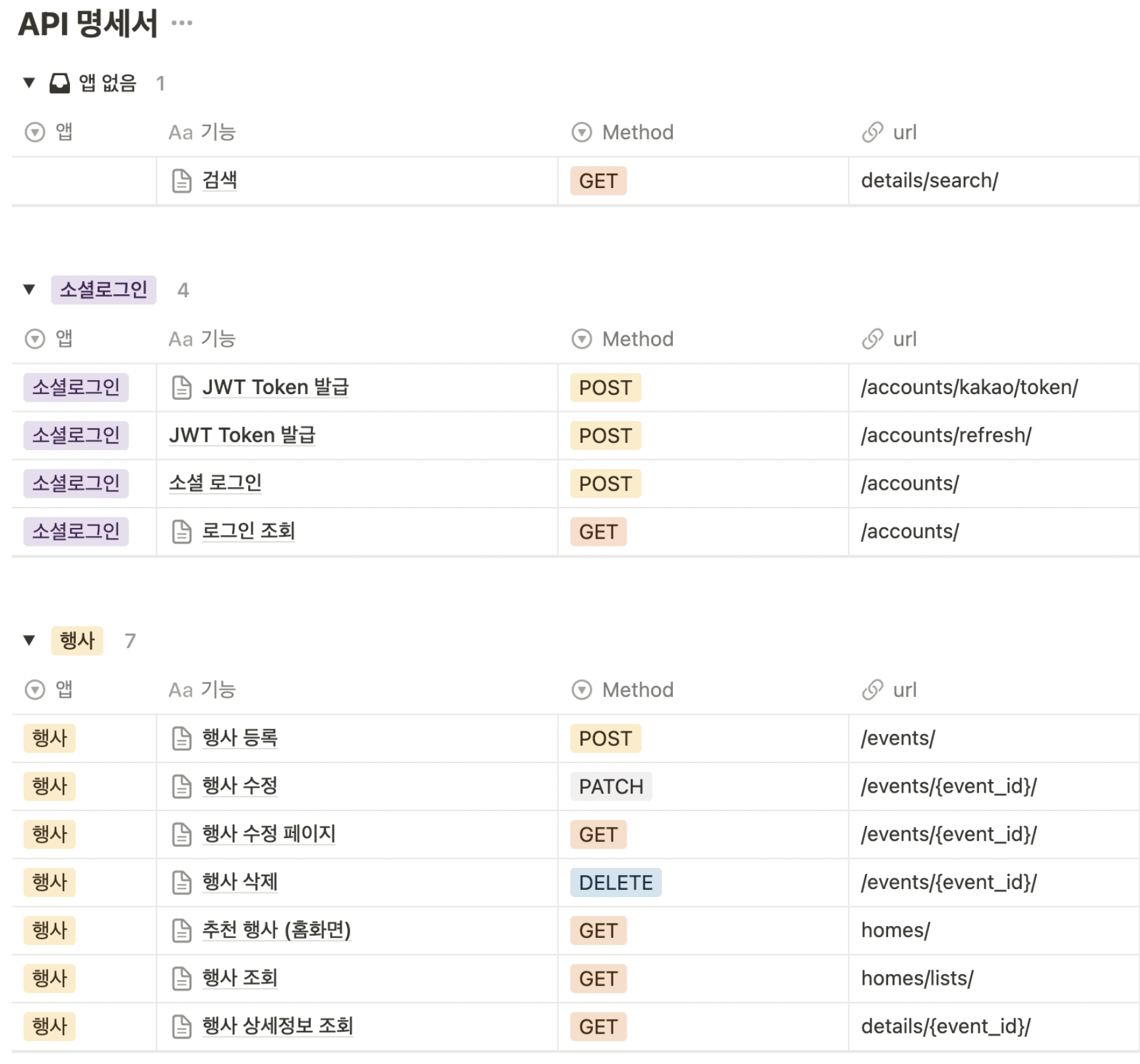행사 일시가 오늘과 가까운 순서대로 정렬되어 보인다