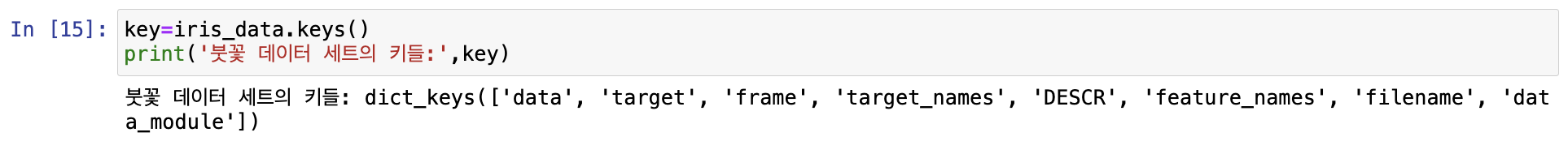 데이터 세트.data or 데이터 세트['data']