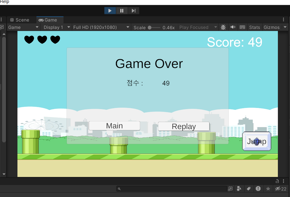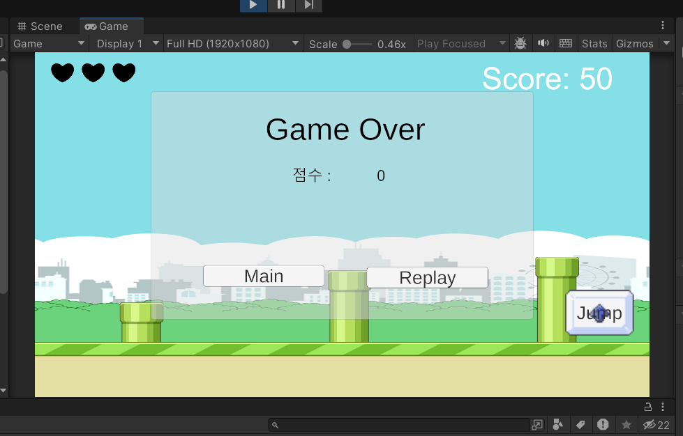 GameOverPanel에 들어가서 ScoreText1에 게임 오브젝트 ScoreText1을 드롭한다. 게임 오브젝트 PlayerManager에 들어가서도 ScoreText1에 게임 오브젝트 ScoreText1을 드롭한다.