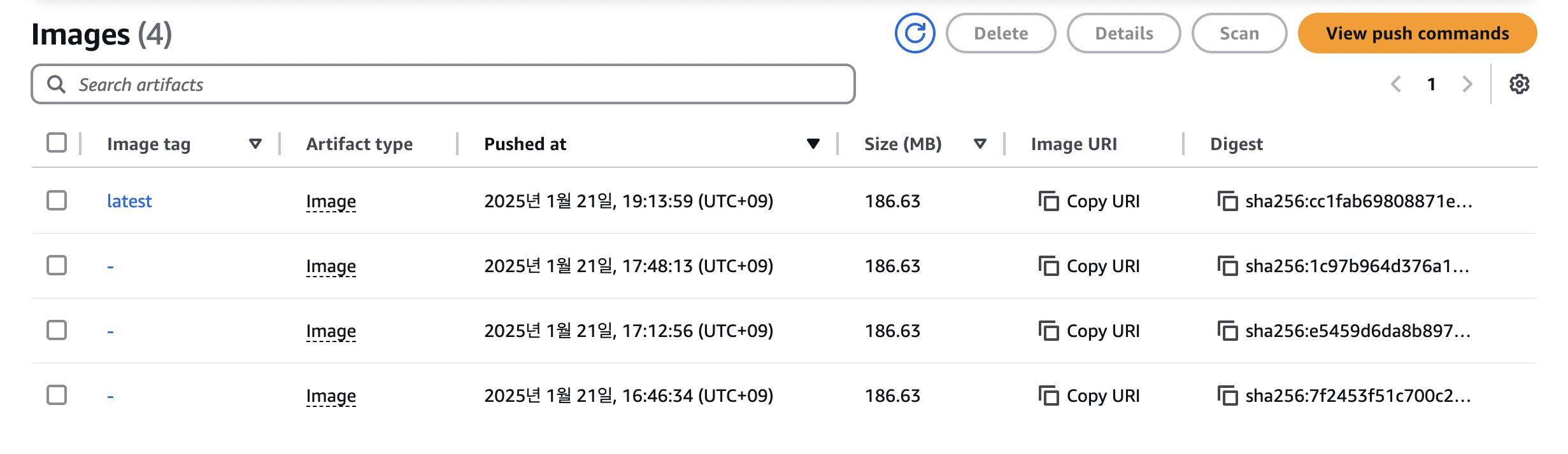 ECR에 Docker 이미지를 업로드하면, latest가 아닌 이전 버전의 이미지들이 지속적으로 남아있게된다.