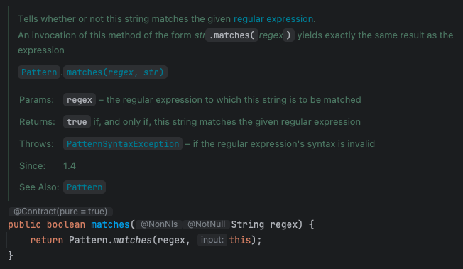 matches()는 문자열을 정규표현식과 매칭되는지 파악해주는 유용한 함수이다