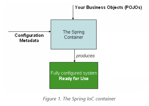 즉, 스프링 컨테이너는 Configuration Metadata와 POJO(Plain Old Java Object)를 소모하여 애플리케이션을 생산하는 주체인 것이다.