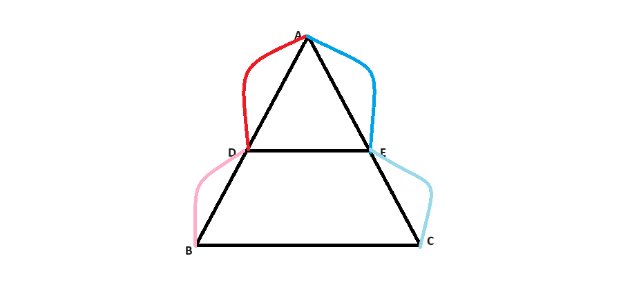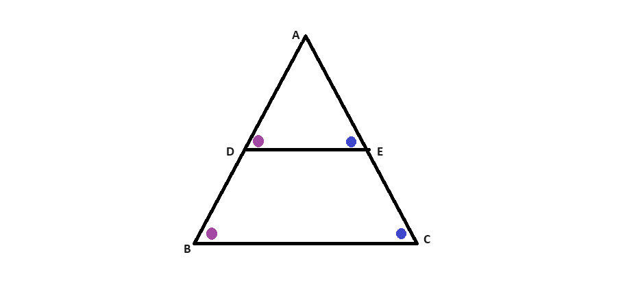 BC와 DE 는 평행하기에, △ABC 와△ADE 는 닮음 관계이다.