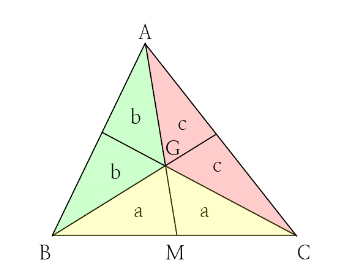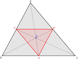 삼각형의 무게중심은 삼각형의 중점을 연결해 만든 삼각형의 무게중심과 같다.