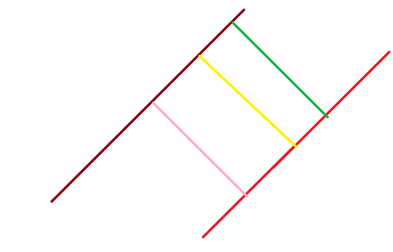 두 직선의 거리는 두 직선과 수직으로 만나는 무수히 많은 직선으로 알아낼 수 있다.
