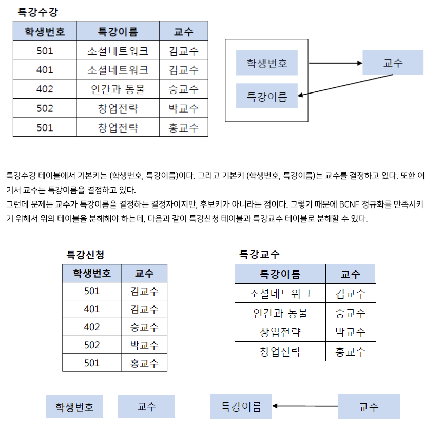 제3 정규화를 진행한 테이블에 대해 모든 결정자가 후보키가 되도록 분해