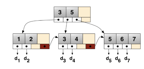 같은 레벨의 노드들은 이중 연결리스트로 연결되어 있기 때문에 부등호를 사용한 순차검색에 최적화 되어있다.