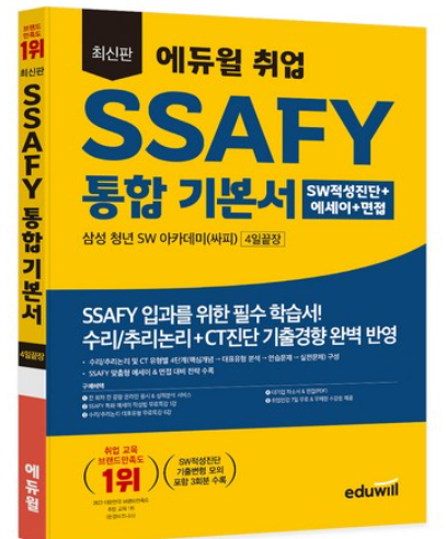 적성진단과 CT문제 모두 싸피 노랑책으로 공부했습니다! 하핫