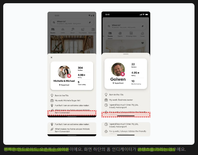 홈 인디케이터가 있는 경우, 하단에 고정된 UI들을 신경 써야 함