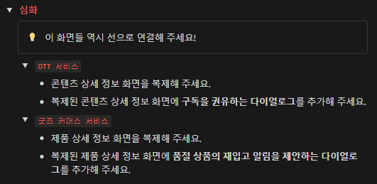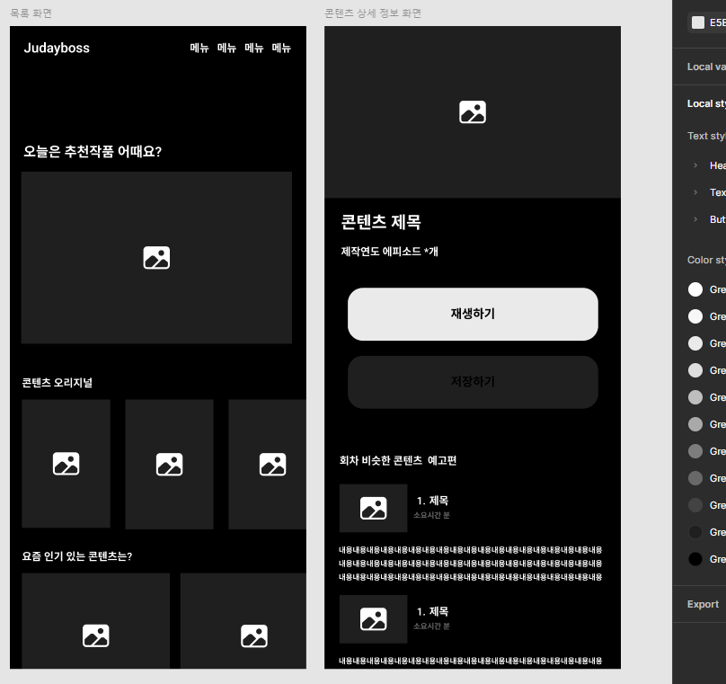 가상의 OTT서비스의 콘텐츠 목록 화면과 콘텐츠 상세 정보 화면