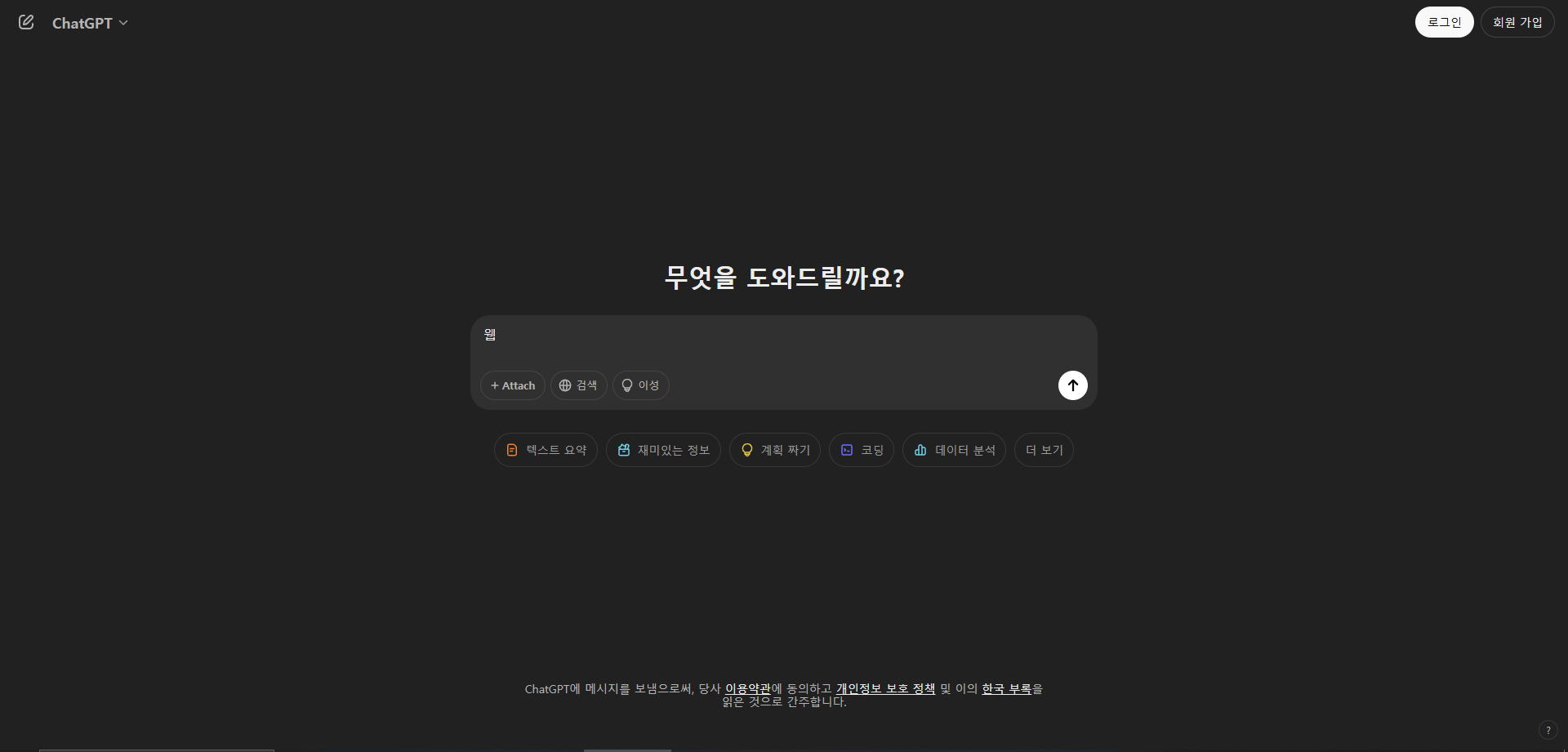 웹 같은 경우 예상 질문 경우에도 메시지 입력 바 밑에 있음을 알 수 있는데,