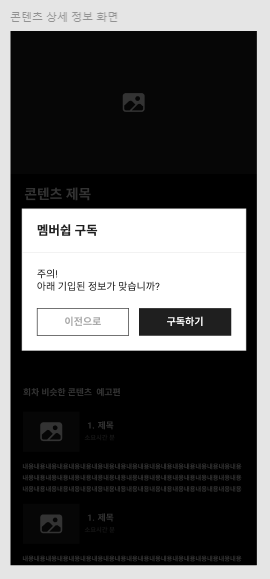 복제된 콘텐츠 상세 정보 화면에 구독을 권유하는 다이얼로그