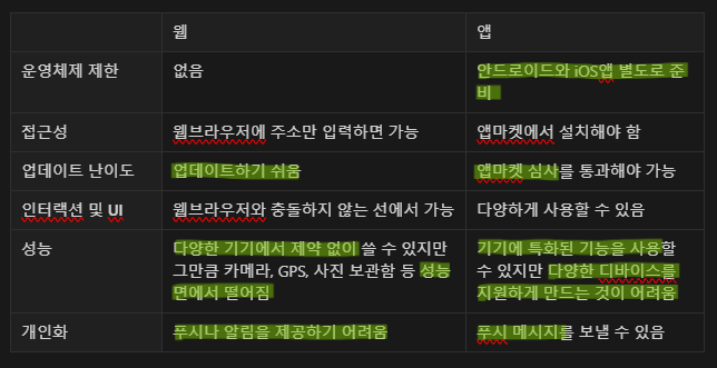 웹과 앱의 특성 비교