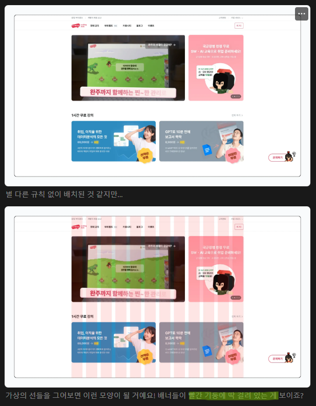 디자인 배치할 기준선이 되는 가상의 선을 긋고, 그 선에 맞춰 레이아웃을 짜게 됨