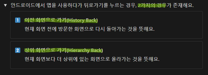 안드로이드 사용자들이 뒤로가기로 눌렀을 때 어떻게 이동해야 하는지 정하기 위하선