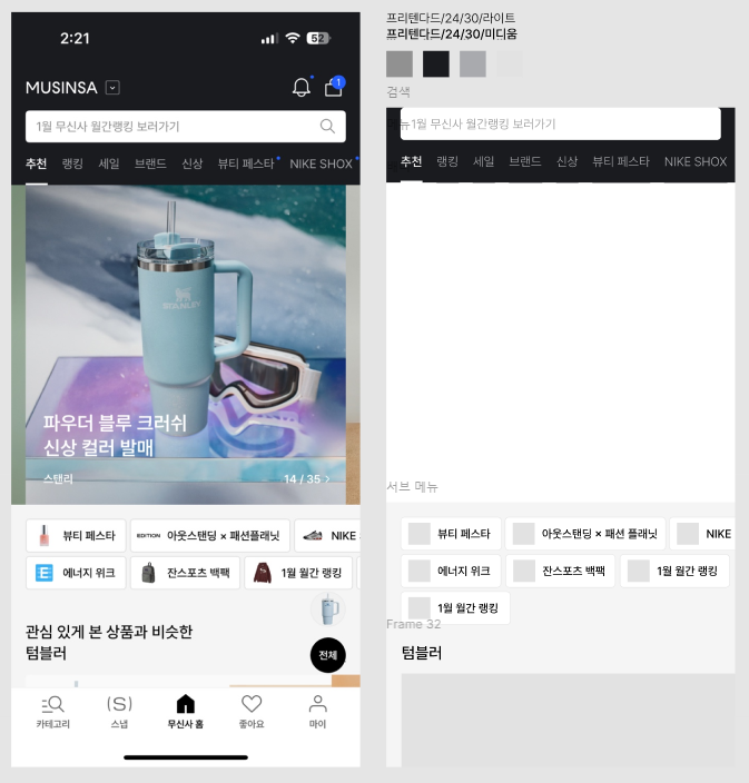 숙제 1 : 주요 화면 비교하고 이유 찾기
