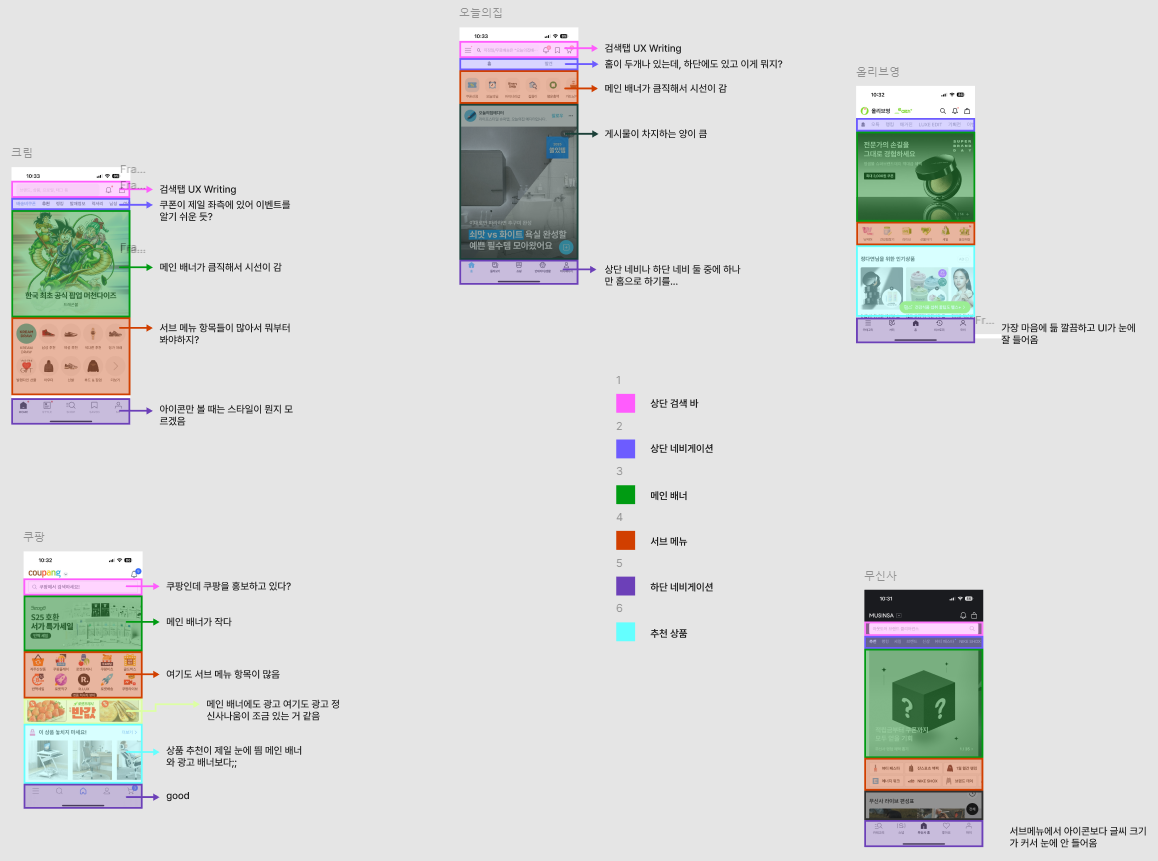 캡쳐하거나 래퍼런스로 구한 화면을 피그마 파일안에 넣어, 다양한 관점으로 분석
