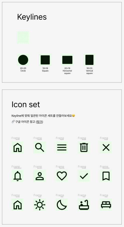 다양한 형태의 아이콘은 그리드에 맞게 배치해 일관되게 제작