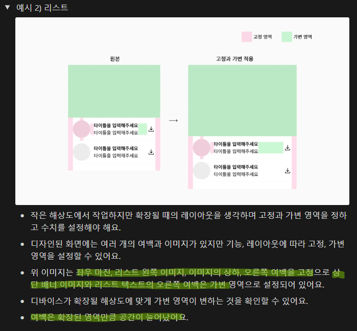 디자인 요소 배치와 해상도에 따라 요소 크기 및 여백은 어떻게 변할지 고려해 디자인