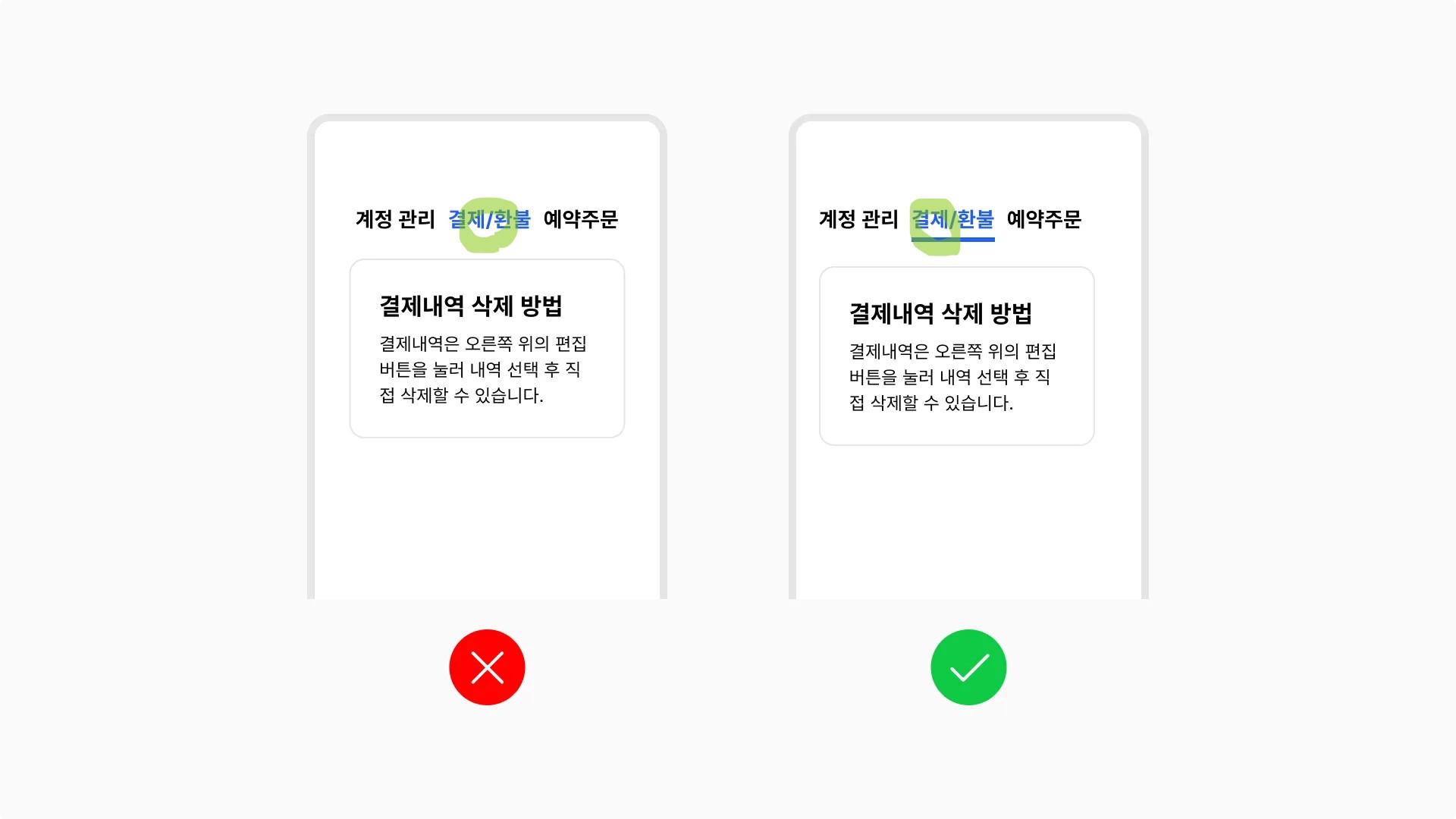 배경색 혹은 콘텐츠와 대비 컬러를 사용해 버튼 강조