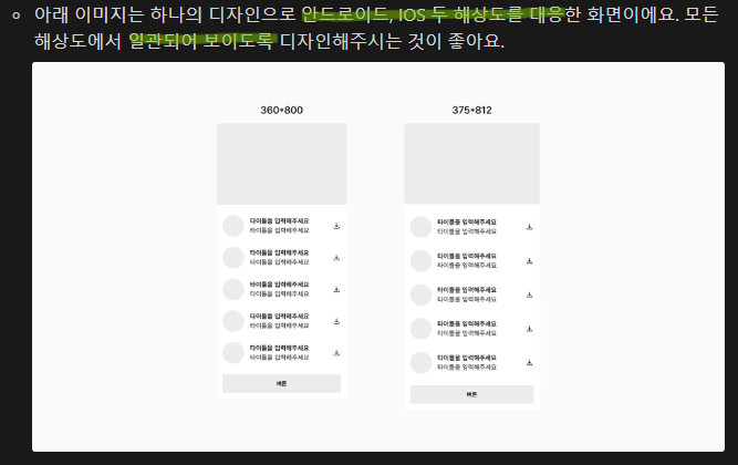대표적으로 안드로이드는 360800, IOS는 375812 해상도 사용