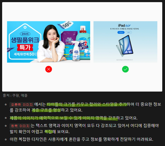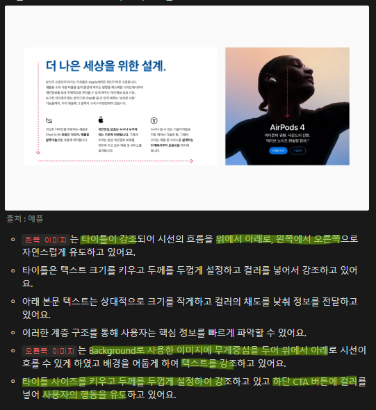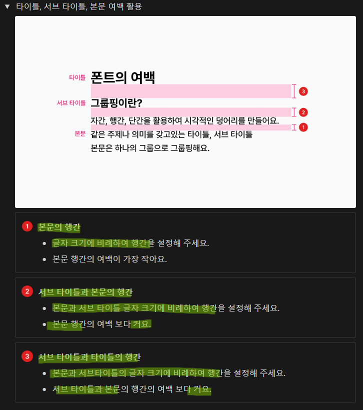 이를 위해 텍스트 크기, 컬러, 위치를 활용할 수 있음