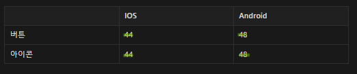 제품에 사용될 아이콘 사이즈 규정