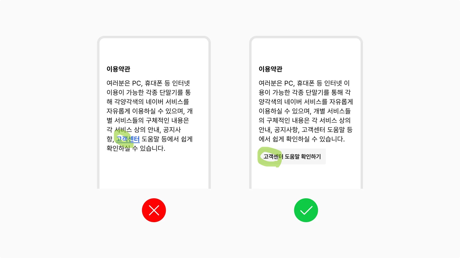 명확한 텍스트와 디자인 요소 : 텍스트, 버튼, 링크는 명확하게 구분하기 쉬워야 함