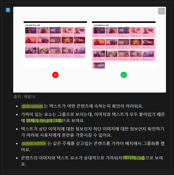 모든 요소 중요도는 같지 않은데 더 중요한 요소는 강조해 눈에 띄게 표시해 중요도에 따라 정보를 확인할 수 있어야 함