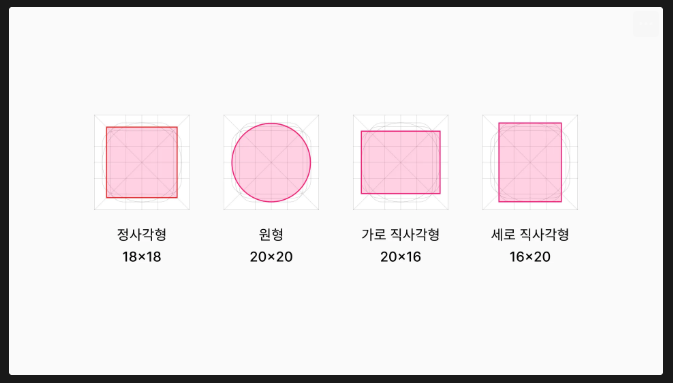정사각형, 원형, 가로 직사각형, 세로 직사각형 모양은 키 라인에 포함되어, 키 라인을 기준으로 아이콘 제작