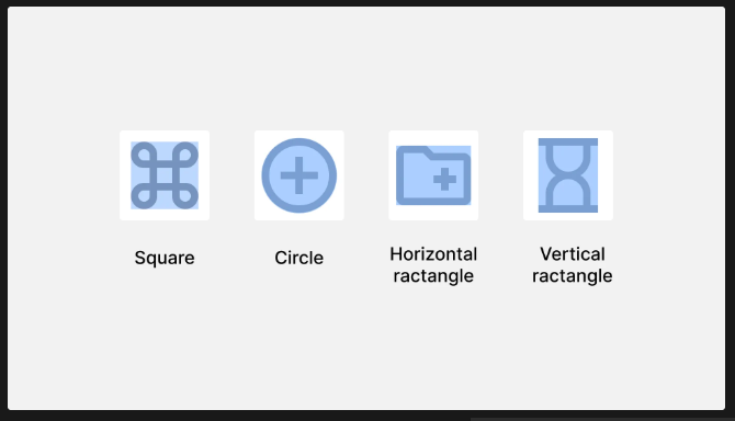 아이콘 형태는 정사각형, 원형, 가로로 긴 사각형, 세로로 긴 사각형 4가지로 나눌 수 있음