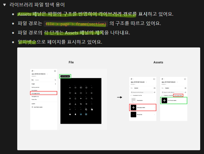 아이콘과 컴포넌트 네이밍은 개발로 활용될 확률이 높기 때문에 영문으로 정의해 주는 것이 좋음