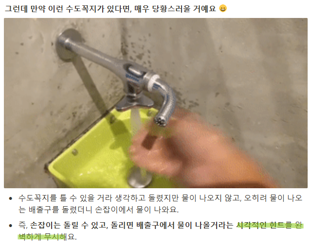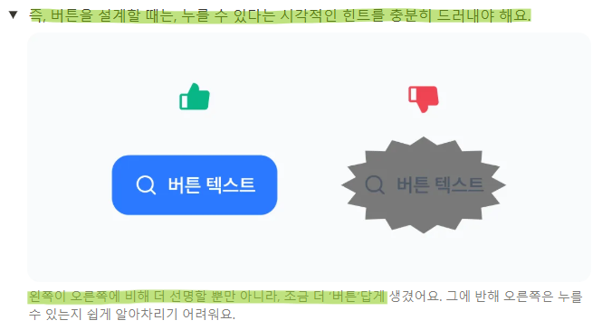 행동 유도성은 상호작용이 가능한 물체는, 상호작용이 가능하다는 시각적인 단서를 제공해야 한다는 뜻임