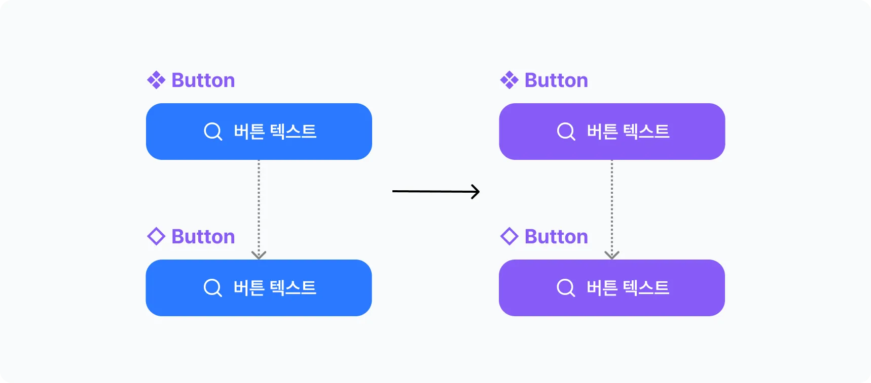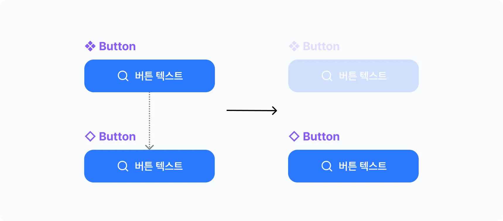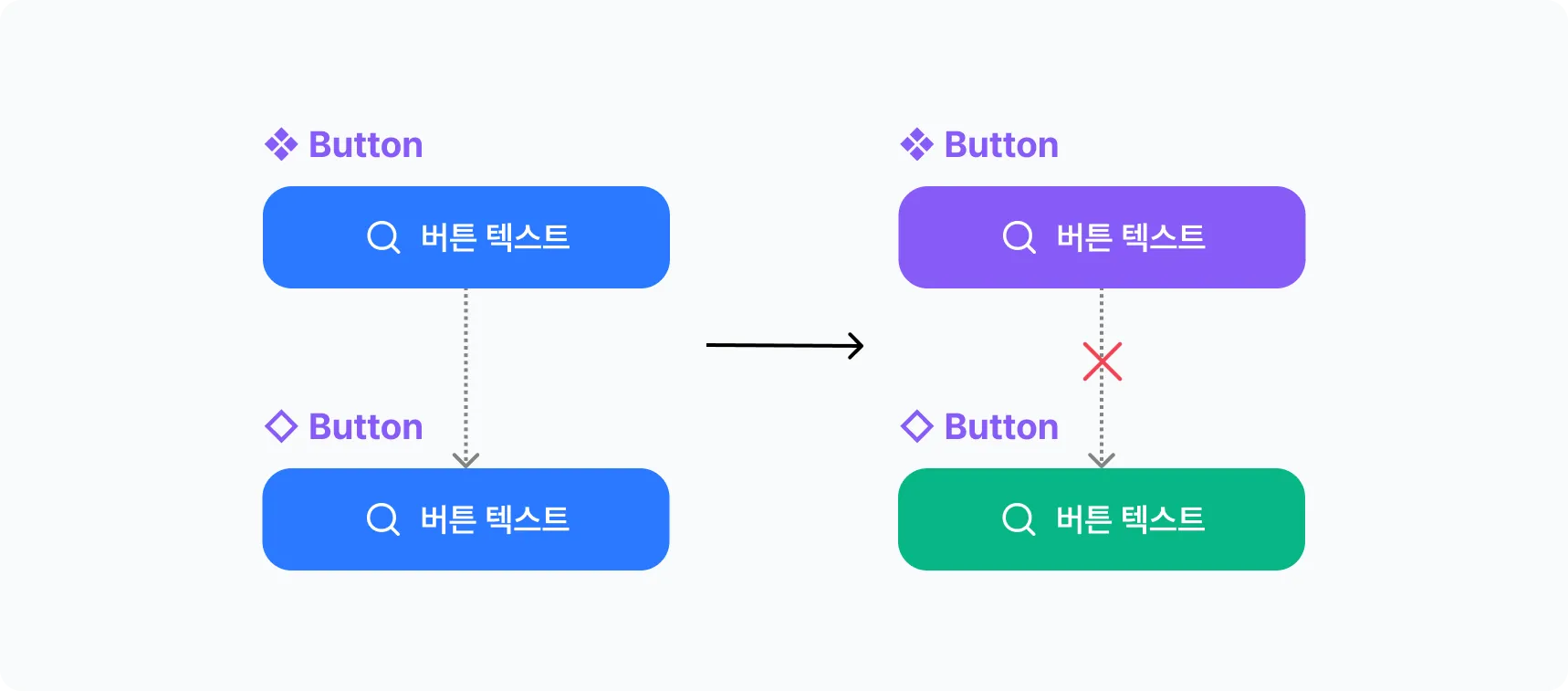 따라서 마스터 컴포넌트를 복사 시 인스턴스가 생기는데, 컴포넌트의 속성을 그대로 이어 받아옴
