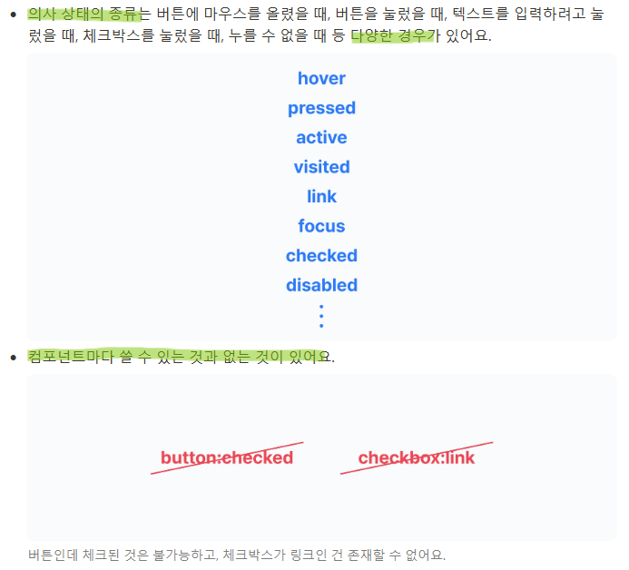 의사 상태는 컴포넌트의 가상의 상태를 표시할 때 사용