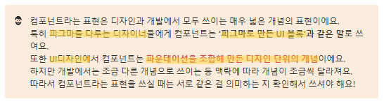 UI 디자인에서 컴포넌트는 파운데이션을 조합해 만들어지는 구성품을 말함
